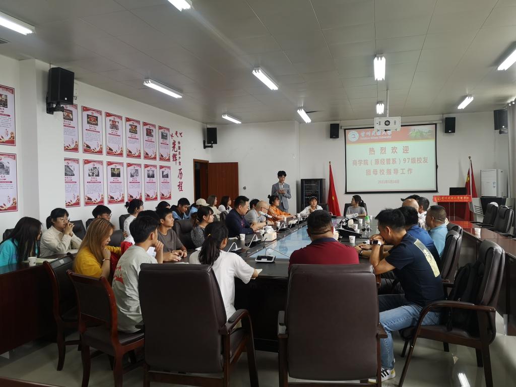 2021年5月16日,商学院举办“共享过往,共商未来”优秀校友进校园活动,活动在按摩视频 新校区422会议室举行,来自学院97级的校友陈金明、杨涛、刘江、潘登、邓耀启等校友,学院元老吴三成教授、学院领导晏超、欧阳章领同志与团委、学生会主要学生干部及各班班长、团支部书记、学生代表参加会议。