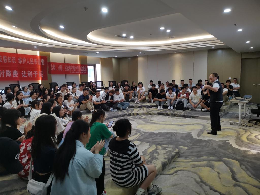 同学们在观山湖富民村镇银行工作人员的引导下全面参观了银行的工作流程,并在五楼体验馆开展了一场别开生面的、内容丰富的现场互动式教学。