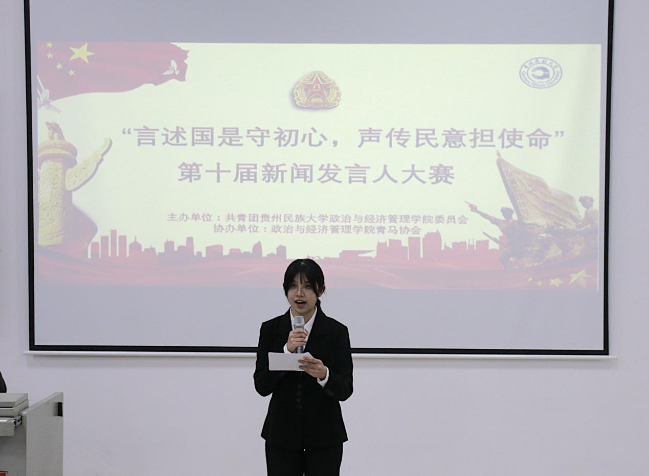 比赛现场氛围热烈,二十余名来自不同年级、不同专业的参赛选手依次登台,化身不同部门的“新闻发言人”,围绕民生保障、经济发展、社会治理等当下社会热点议题,完整呈现 “新闻发布” 与 “记者问答” 两大核心环节。选手们从容不迫、言辞恳切,或引经据典深化论述,或结合实例增强共鸣,每一次表达都力求 “言有物、语有情”,既传递政策温度,又回应民生关切,精彩表现赢得现场评委与观众的阵阵掌声。