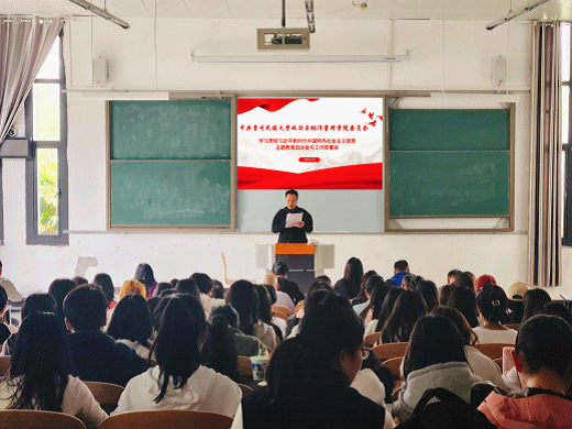 政治与经济管理委员会学习贯彻习近平新时代中国特色社会主义思想主题教育(以下简称主题教育)工作会议在新校区1号教学楼负106教室举行,会议由学院党委副书记、院长王红梅同志主持,学校主题教育第七指导组全体成员、学院党委委员、班子成员、各支部全体党员参加会议。